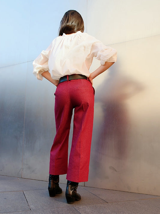 Pantalón denim granate