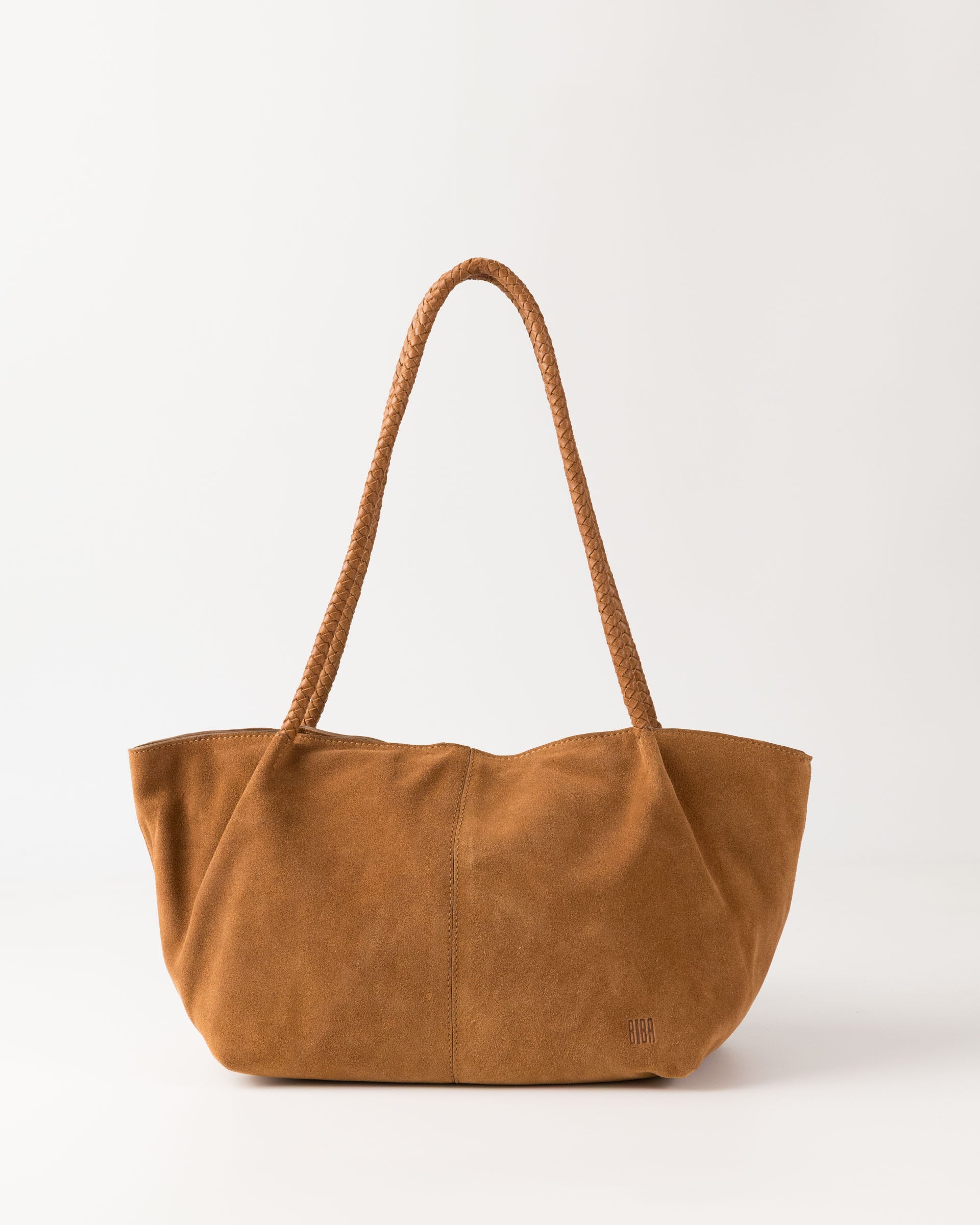 Shopper pequeño formato baguette de serraje vacuno. Cierre con cremallera. Bolsillos internos. Forro de algodón.