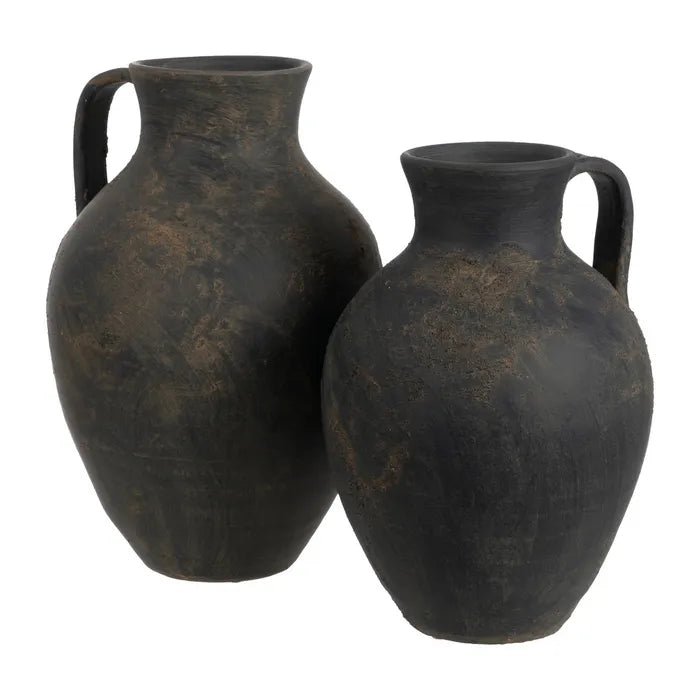 JARRÓN ASA GRIS ENVEJECIDO BARRO EL TAMAÑO PEQUEÑO ES 26 X 26 X 36 CM, Y EL GRANDE MIDE 27x27x46
