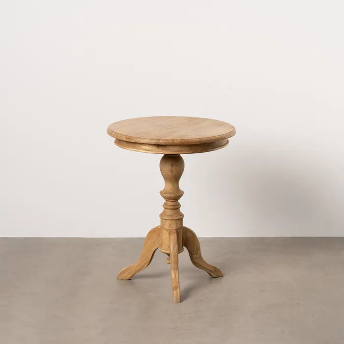 Mesa auxiliar madera mindi, las medidas son de 50*50*64 cms.